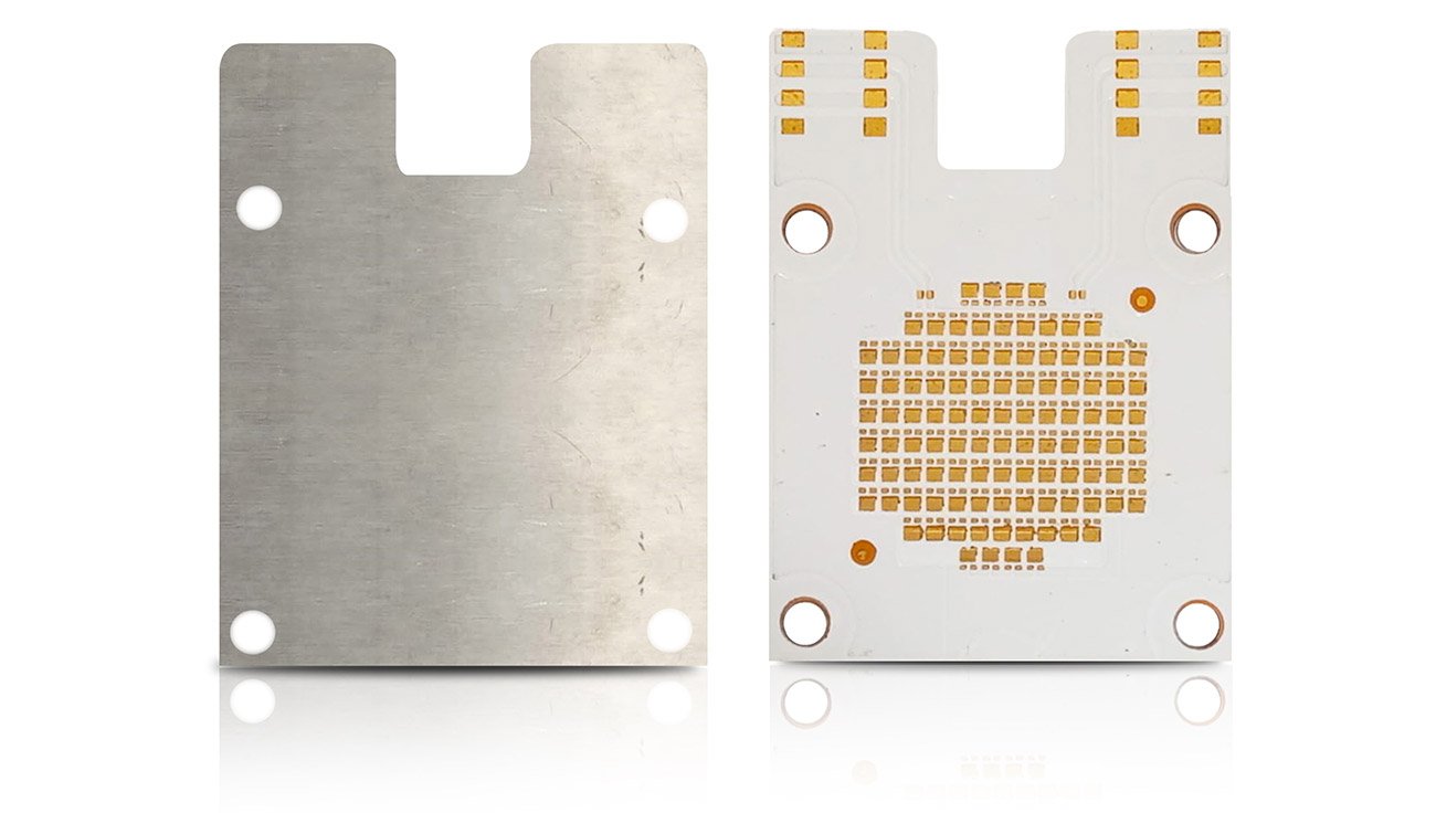 For bonding the prepreg to the metal core, PCB Runner uses a process that does not allow the formation of air bubbles in between them. Air bubbles are heat insulators and their presence inhibits heat transfer from LED to the metal core.