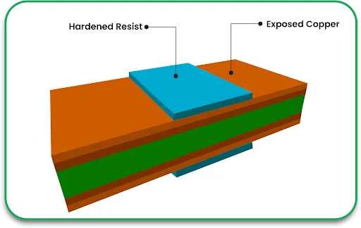• Get rid of unwanted copper after developing it, and retain the traces for the circuits.