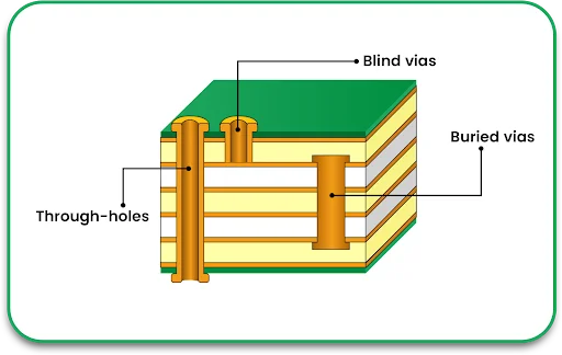 Blind vias: Connect outer layers with inner layers.