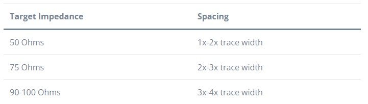 • Large spacing is required when working with high-speed traces to avoid any type of crosstalk.