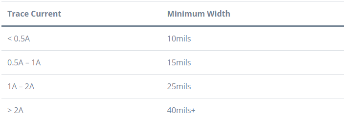 • Depending on the circuit, different trace widths will be present in the power supplies.