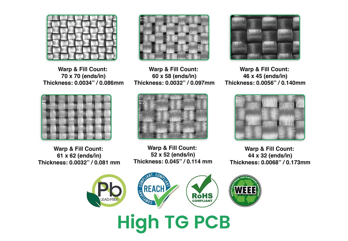 Our High Tg PCB material is much superior to that available in the market. PCBs made with this material can go through multiple thermal excursions without damage—six solder tests at 288 degrees each. We have optimized the material for superior drilling performance—high aspect ratio holes with up to 10 mil dia. The unique resin chemistry of this material offers CAF resistance along with long-term reliability, even for boards built with small feature designs. Even with regular fabrication techniques, this material allows improved productivity because of its fast cure capability.